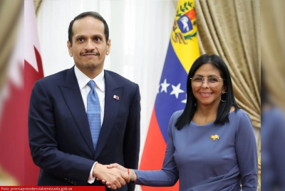 Delcy Rodríguez recibe en Venezuela al primer ministro de Catar