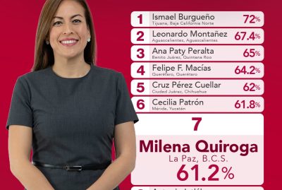Consolida Milena Quiroga la transformación en La Paz: Se posiciona en el Top 10 de los mejores alcaldes de México