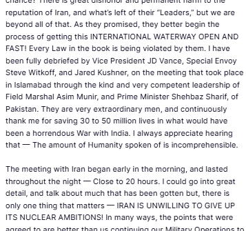 Trump: «Irán nunca tendrá un arma nuclear»; el mandatario exige la reapertura inmediata de Ormuz
