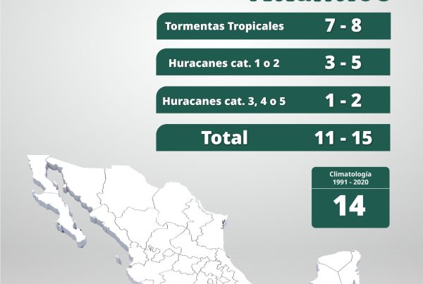Se pronostican lluvias puntuales intensas, de 75 a 150 milímetros (mm), en Oaxaca y Chiapas, así como fuertes rachas de viento y oleaje elevado en las costas del Pacífico mexicano, principalmente en el sur.