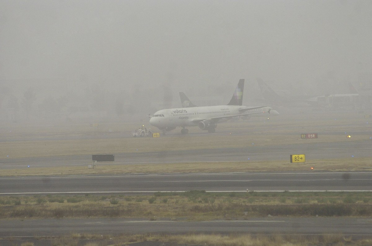 Un banco de neblina afectó las operaciones del Aeropuerto Internacional de la Ciudad de México (AICM), lo que obligó a suspender temporalmente los aterrizajes. Mientras los despegues continuaban de manera intermitente, con demoras de al menos una hora, según reportes de usuarios.