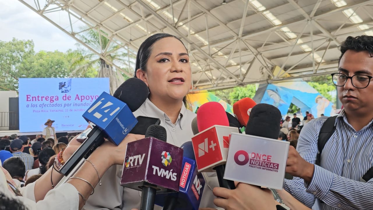 La secretaria de Bienestar, Ariadna Montiel, acudió a Poza Rica, Veracruz, donde se reunió con los afectados por las fuertes lluvias y les entregó un apoyo de 20 mil pesos; serán 100 mil familias beneficiadas con una inversión total de 10 mil millones de pesos para los cinco estados.