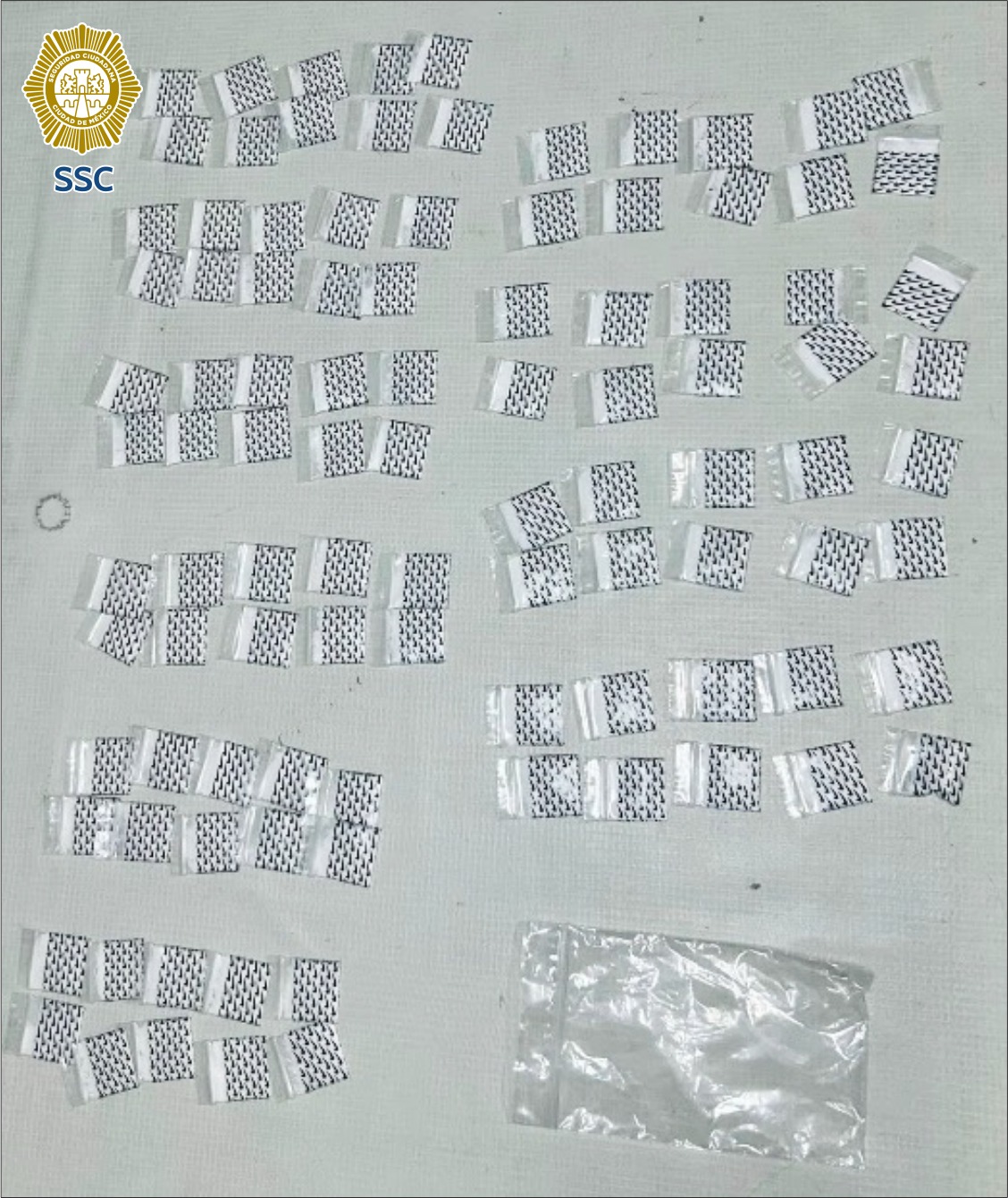 El primer despliegue se llevó a cabo en la calle Lago Cupatitzio, de la colonia Pensil, en la alcaldía Miguel Hidalgo, donde detuvieron a un hombre de 27 años y aseguraron 100 dosis de una sustancia sólida color blanco similar a la cocaína, 100 bolsitas de plástico que contenían posible metanfetamina, además de un arma de fuego con tres cartuchos útiles y un teléfono celular.