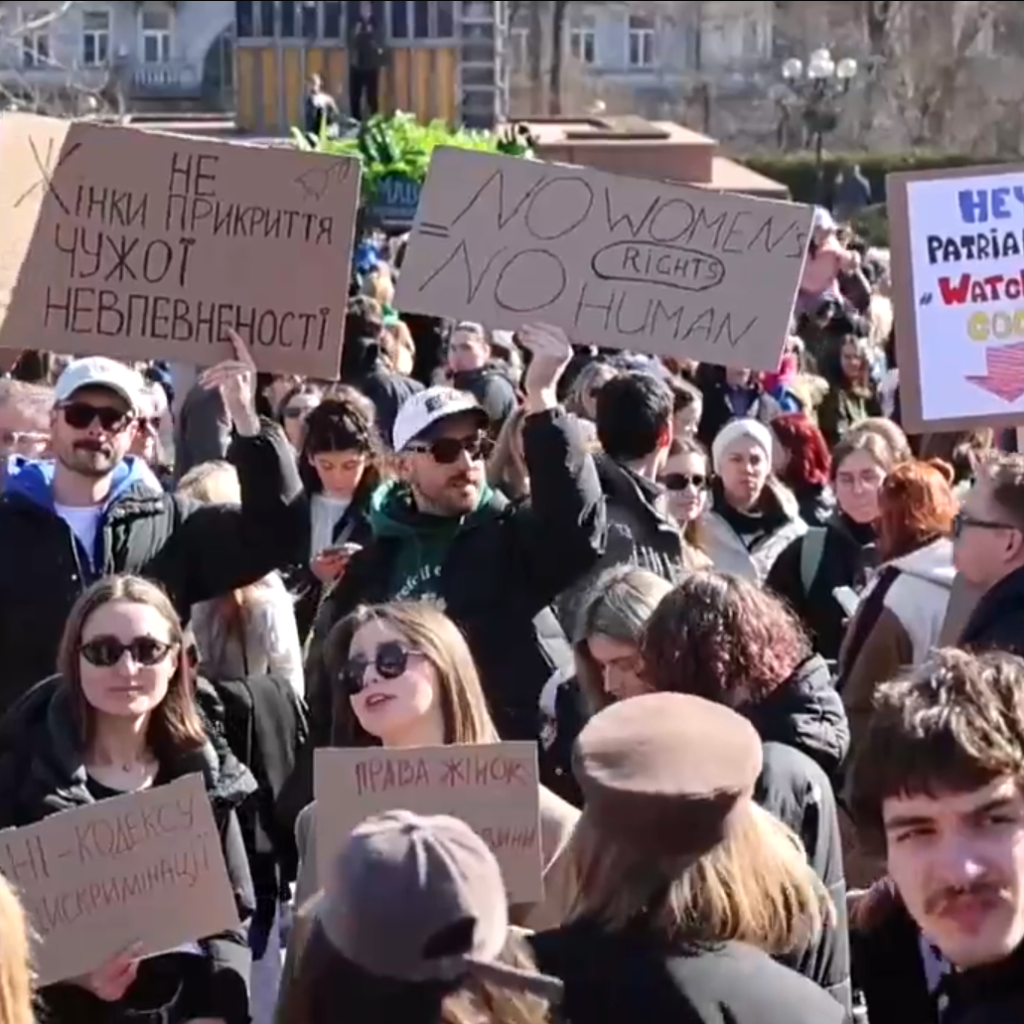 Durante la movilización, las participantes expresaron su rechazo a la nueva versión del Código Civil ucraniano y pidieron atención para los derechos de las militares y de las mujeres ucranianas cautivas en Rusia, en plena invasión rusa del país.