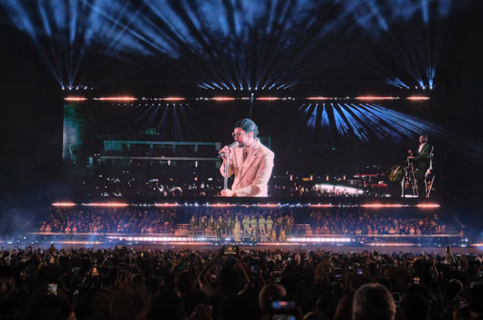 Videos difundidos en redes muestran que, durante el segmento de “La Casita”, el artista invitó al escenario a los actores mexicanos Diego Boneta, Renata Notni y Ana de la Reguera mientras interpretaba “Tití Me Preguntó”. Los tres participaron en la fiesta de ambiente tropical que caracteriza esa parte del espectáculo.