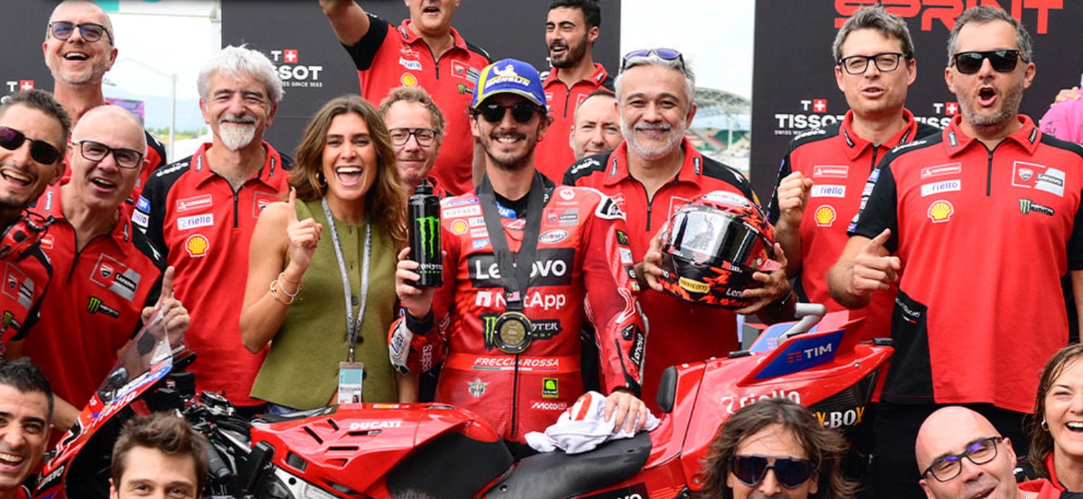 El Gran Premio de Malasia demostró una vez más el absoluto dominio de las motocicletas Ducati, que coparon las dos primeras posiciones, además de los lugares de Franco Morbidelli (5º) y Fermín Aldeguer (7º). La jornada fue clave para consolidar la estructura italiana en lo más alto del motociclismo y dejar casi definida la tabla de posiciones con solo dos carreras por disputar: Bagnaia consolida su tercer lugar en el mundial (con 286 puntos), empatado con Marco Bezzecchi (Aprilia) y buscando asegurar el cuarto lugar del campeonato de pilotos en la próxima carrera. El plato fuerte queda servido para la carrera del domingo, con Peco Bagnaia en la pole.