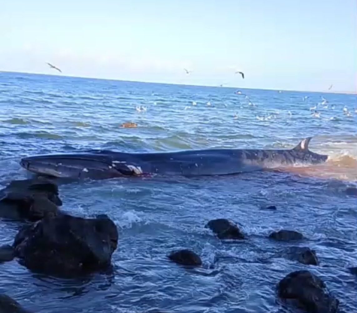 México.— Se reportó en redes una ballena varada en la boca del estero de Lomas del Mar de Piaxtla, en el municipio de San Ignacio, Sinaloa, debido al fuerte oleaje de la zona el animal ha golpeado constantemente contra las rocas, causándole visibles lesiones.