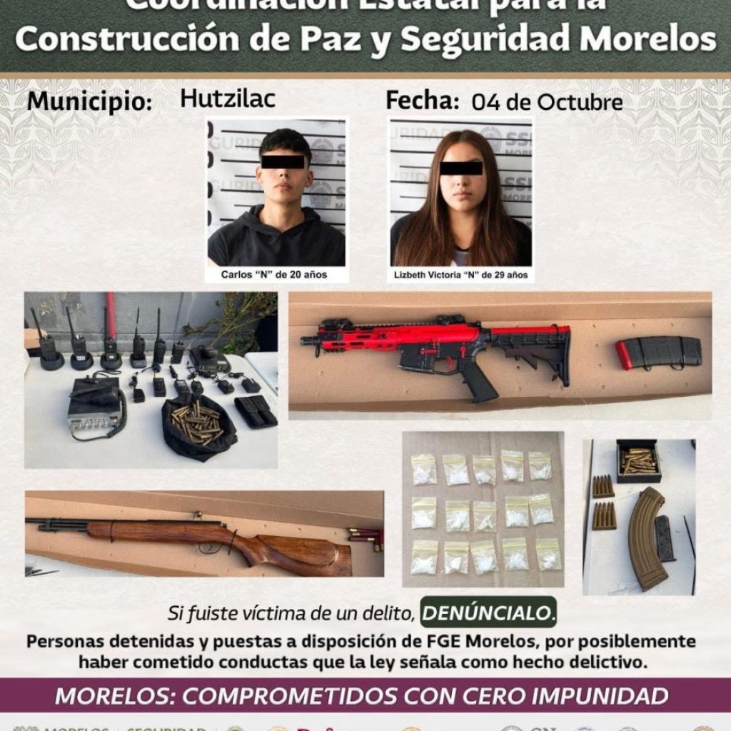 Un operativo coordinado entre el Ejército Mexicano, Guardia Nacional y Secretarías de Marina y de Seguridad de Morelos, logró la detención de cuatro personas vinculadas al grupo criminal “Los Roques” o “Los Vara”, dedicado al robo de vehículos, transporte de carga y despojos en la zona de Huitzilac.