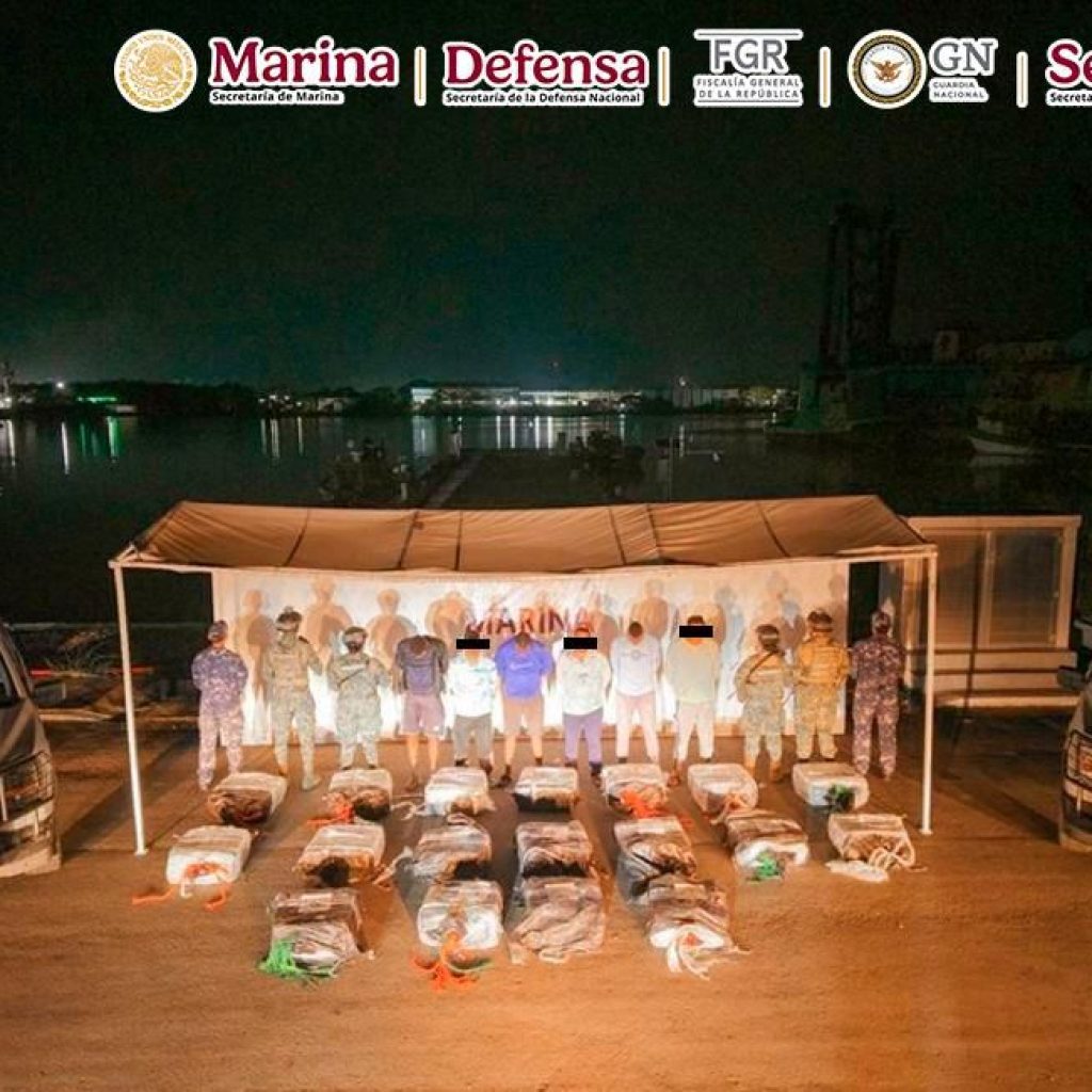 En una acción interinstitucional, autoridades federales y locales de Chiapas aseguraron 18 bultos de cocaína, al noroeste de Puerto, donde se interceptó y aseguró una embarcación menor en la que viajaban seis personas de nacionalidad extranjera, quienes fueron detenidos.