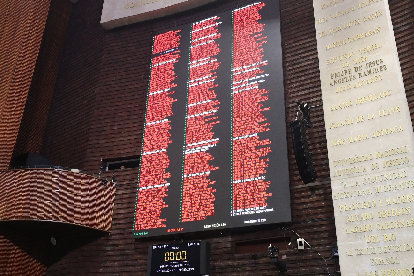 Con 278 votos a favor y 25 en contra, la Cámara de Diputados aprobó cambios en lo particular al dictamen con proyecto de decreto por el que se reforman diversas fracciones arancelarias de la tarifa de la Ley de los Impuestos Generales de Importación y de Exportación.