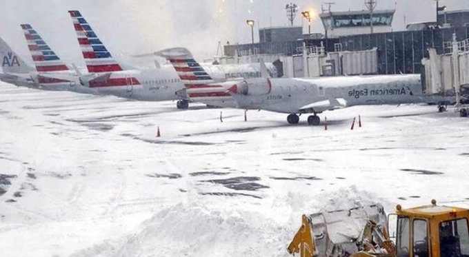 Debido a una tormenta invernal pronosticada para este fin de semana en la costa este de Estados Unidos, FlighAware reveló que este viernes se han cancelado al menos mil 748 vuelos y 21 mil 102 retrasos en los aeropuertos internacionales de la zona como el John F. Kennedy (JFK) en Nueva York.