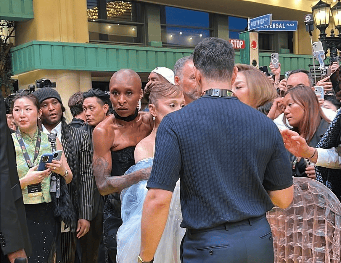 Ariana Grande vivió un momento de tensión durante la premiere de Wicked: For Good en Universal Studios Singapore, cuando un fan irrumpió en la alfombra amarilla y logró sujetarla brevemente.