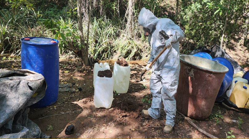 En Culiacán, Sinaloa, se localizó e inhabilitó un laboratorio clandestino para la fabricación de drogas sintéticas, se aseguraron 750 litros y 225 kilos de sustancias para la elaboración de metanfetamina. La afectación económica a la delincuencia organizada es de 408 millones de pesos.