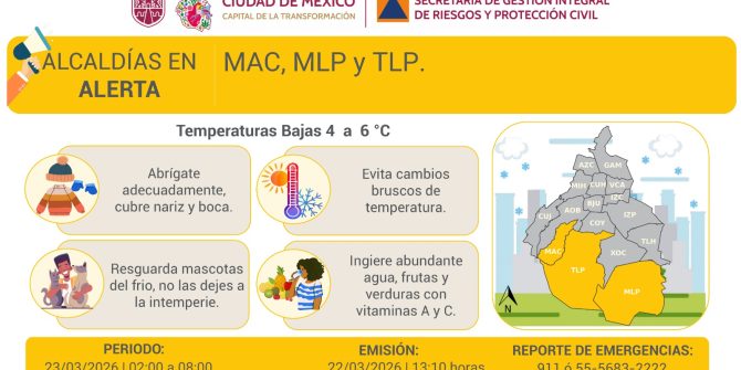 Activan doble alerta en la CDMX por bajas temperaturas