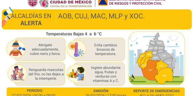 Activan Alerta Naranja por temperaturas bajas en la CDMX