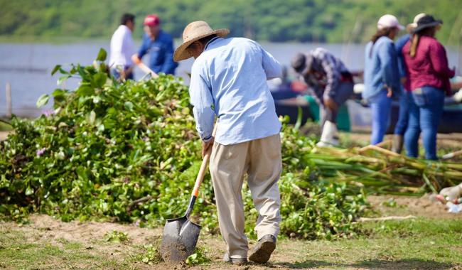 El operativo se centró en el retiro masivo de lirio acuático, una especie invasora que ha obstaculizado la navegación y la reproducción de especies comerciales. Para ello, se desplegó maquinaria de gran alcance, apoyada por una brigada comunitaria integrada por pobladores de las zonas aledañas y colaboradores de los tres órdenes de gobierno.