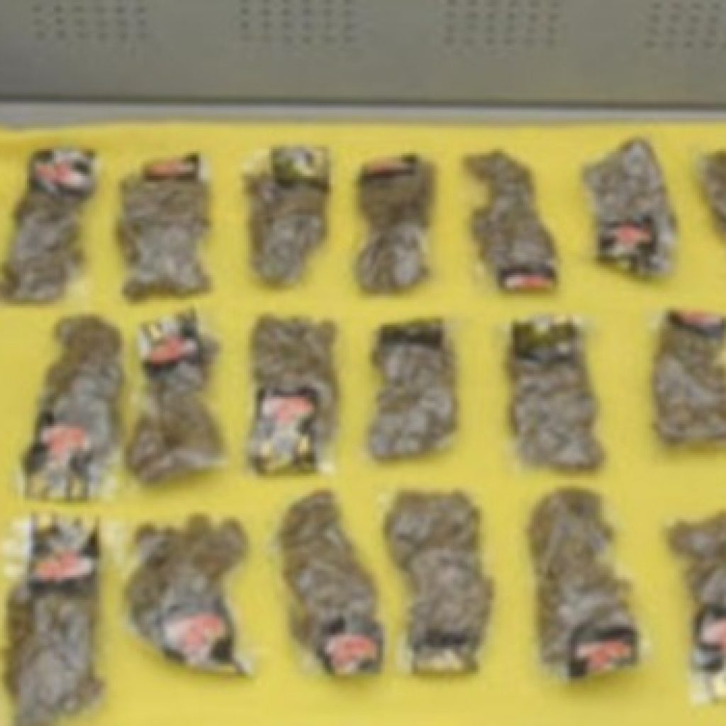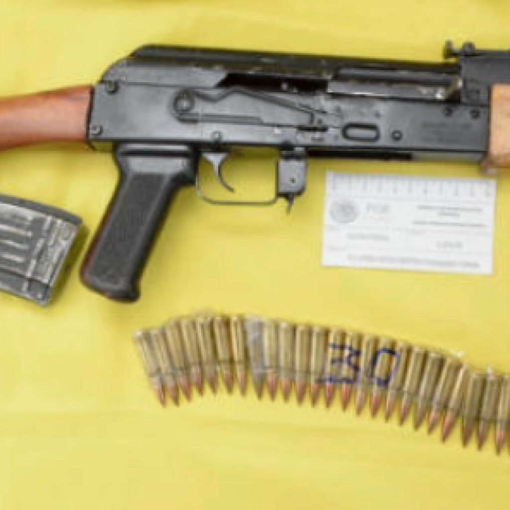 Una vez identificado el sujeto, fue detenido junto con otros dos individuos que se mostraron agresivos, asegurándoles cuatro armas de fuego largas y tres cortas, 17 cargadores, 361 cartuchos útiles, cuatro chalecos balísticos que tenían una leyenda alusiva a una organización criminal; dinero en efectivo, marihuana, clorhidrato de metanfetamina, un artefacto explosivo de fabricación artesanal y dos vehículos.