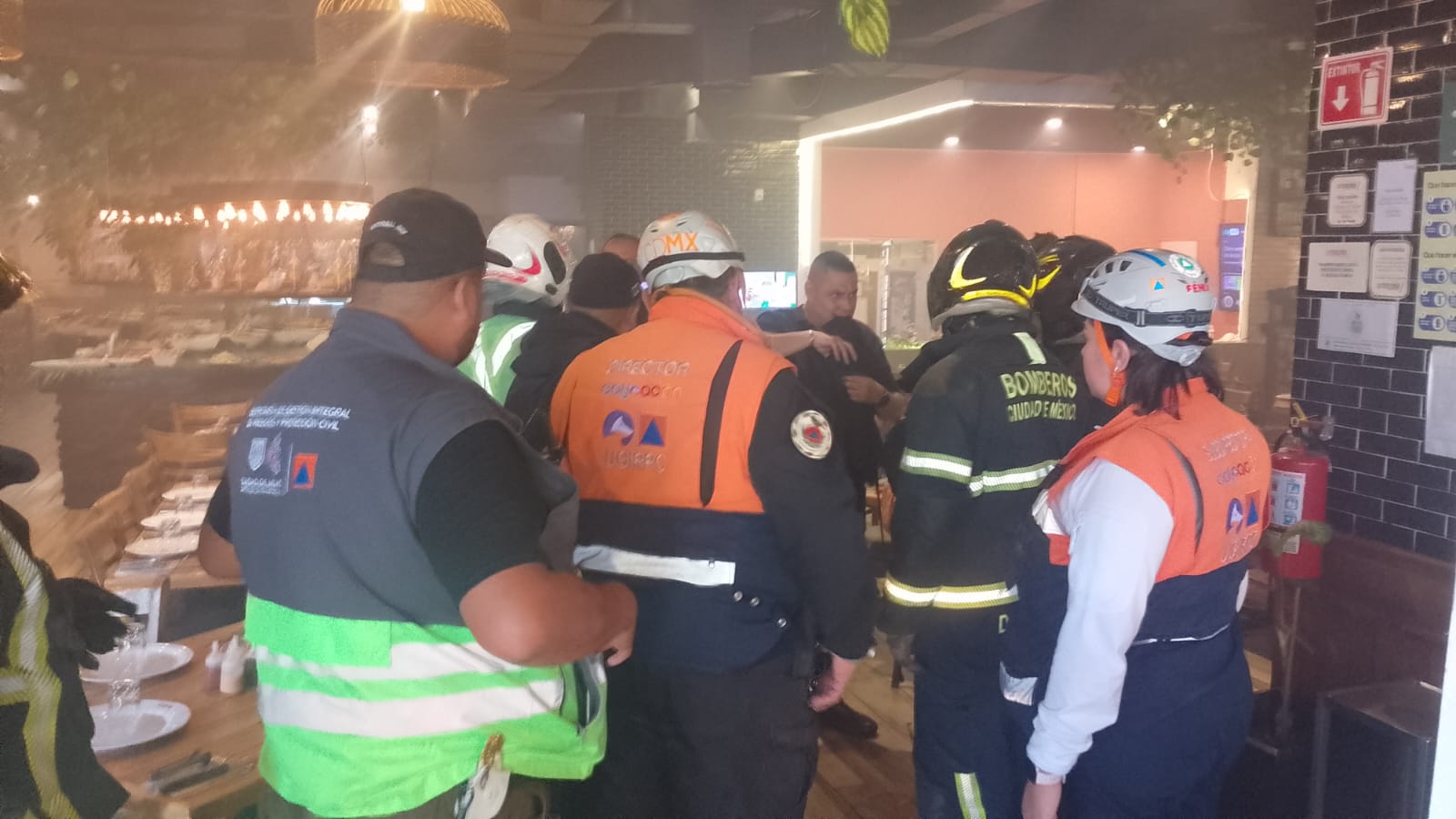 Elementos de Protección Civil y el Heroico Cuerpo de Bomberos desalojaron a 40 personas que se encontraban en un restaurante de Súper Plaza Miramontes debido a un conato de incendio.