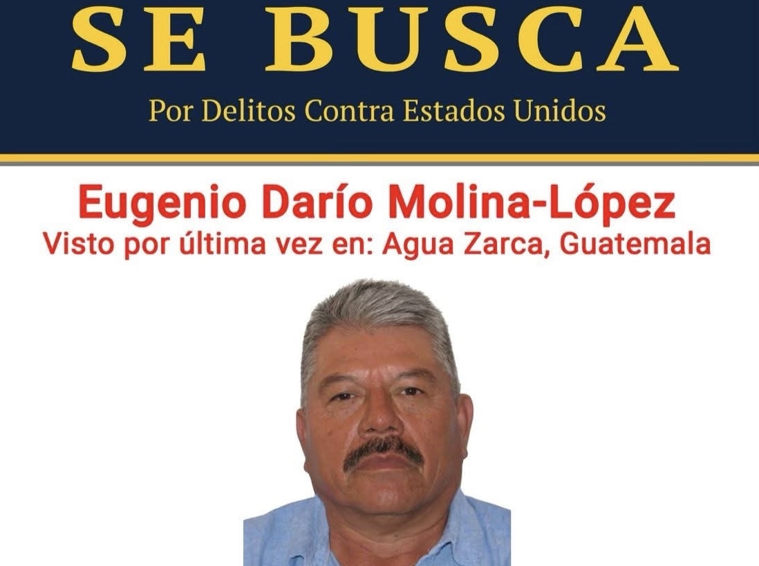 El Departamento de Estado de Estados Unidos ofrece una recompensa de 10 millones de dólares por información que lleve a la captura de Eugenio Darío Molina López, conocido como ‘Botas’, ‘Don Darío’, ‘Molis’ y ‘Sombrero’, líder de la célula delictiva guatemalteca “Los Huistas”.