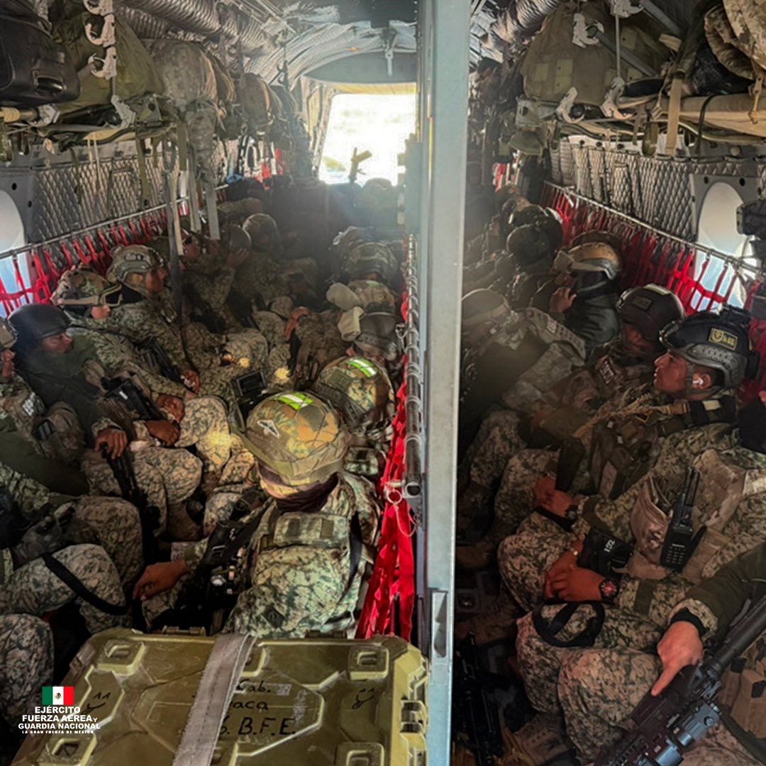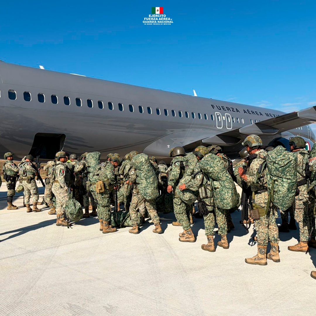 Este jueves, en el marco de la Estrategia Nacional de Seguridad Pública, mil 600 efectivos del Ejército Mexicano, incluidos 90 integrantes del Cuerpo de Fuerzas Especiales, iniciaron su despliegue vía aérea de diferentes puntos de la República en 4 aeronaves de transporte pesado de la Fuerza Aérea Mexicana hacia los municipios de Culiacán y Mazatlán en el estado de Sinaloa, con el fin de reforzar el despliegue operativo que mantiene la III Región Militar y 9/a. Zona Militar en esa entidad federativa,