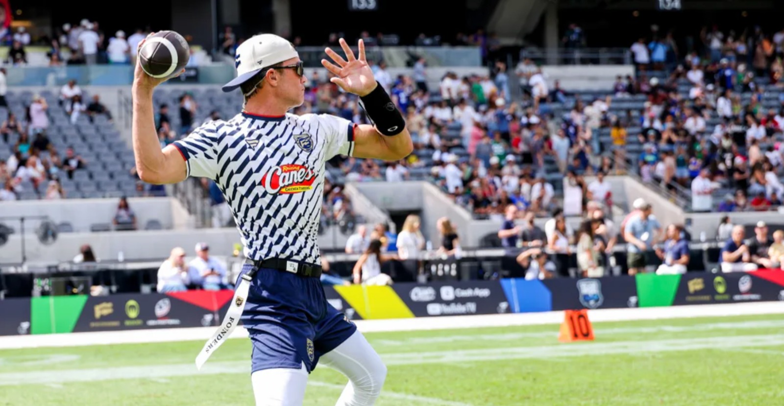 El legendario Tom Brady volvió a acaparar los reflectores durante el Fanatics Flag Football Classic en Los Ángeles. A tres años de su retiro definitivo de la NFL, el mariscal de campo de 48 años demostró que su talento permanece intacto al participar en este evento estelar celebrado en el BMO Stadium. Aunque se trató de una exhibición de flag football, la presencia del siete veces campeón del Super Bowl generó una expectación similar a la de sus mejores épocas como profesional.