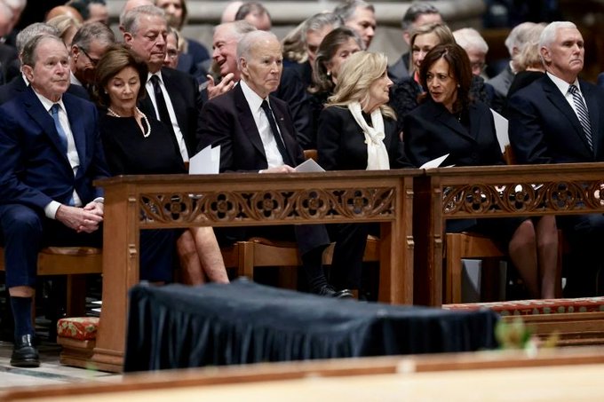 Los exvicepresidentes Kamala Harris, Mike Pense, Al George y Dan Qualye también asistieron al evento fúnebre junto con generales, dignatarios extranjeros y jueces de la Suprema Corte de Estados Unidos.