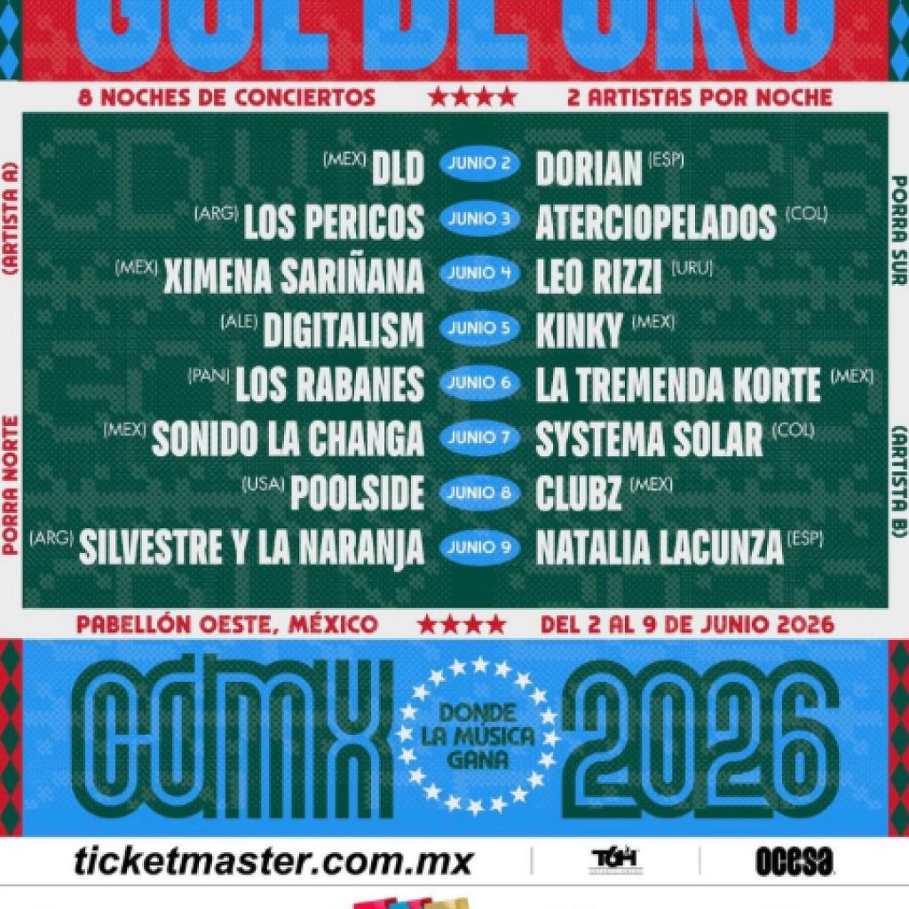 Ciudad de México. La fiebre mundialista llegará a los escenarios mexicanos antes que a los estadios. Los organizadores de ‘Gol de Oro’ presentaron este lunes los detalles de un ciclo de ocho conciertos que se celebrarán en el Pabellón Oeste del Palacio de los Deportes, transformado para la ocasión en una cancha de fútbol musical.