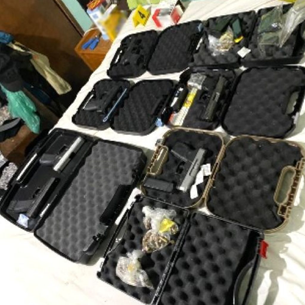 En la diligencia se aseguraron siete armas de fuego cortas, 17 cargadores, cartuchos de diversos calibres, cuatro teléfonos celulares, un vehículo y diversa documentación.
