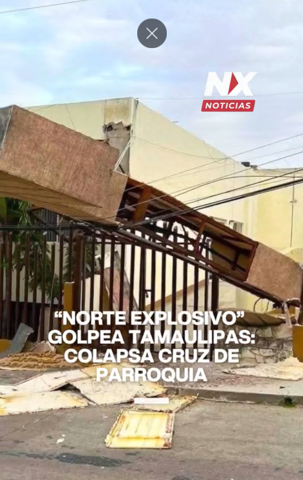 .En el puerto de Tampico, la fuerza del viento derribó la cruz exterior de la parroquia Nuestra Señora de Lourdes. Debido a este incidente y otros daños estructurales, la Secretaría de la Defensa Nacional activó el Plan DN-III-E en la zona. Además, se reportaron múltiples postes caídos, fallas en el suministro eléctrico e incluso un incendio en una toma de gas. Sin embargo, el cuerpo de bomberos logró controlar el fuego de manera oportuna.