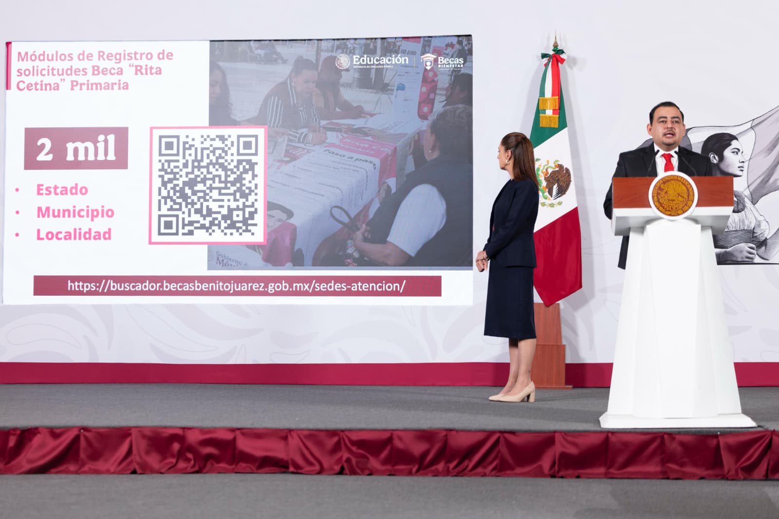 Por otro lado, Julio César León Trujillo, coordinador nacional de Becas para el Bienestar presentó un informe sobre el avance de la Beca Rita Cetina, uno de los programas educativos impulsados por la actual administración para apoyar a estudiantes y reducir la deserción escolar.