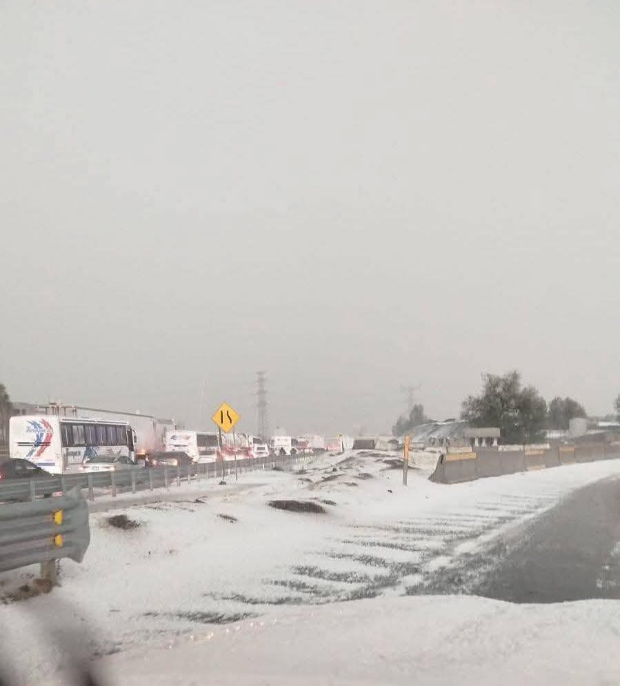 Una fuerte granizada sorprendió a habitantes del municipio de Tecámac, Estado de México, donde varias vialidades quedaron cubiertas de hielo, lo que provocó afectaciones en la circulación vehicular.