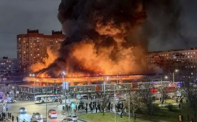 Este miércoles se informó sobre un fuerte incendio en un mercado de San Petersburgo, Rusia.
