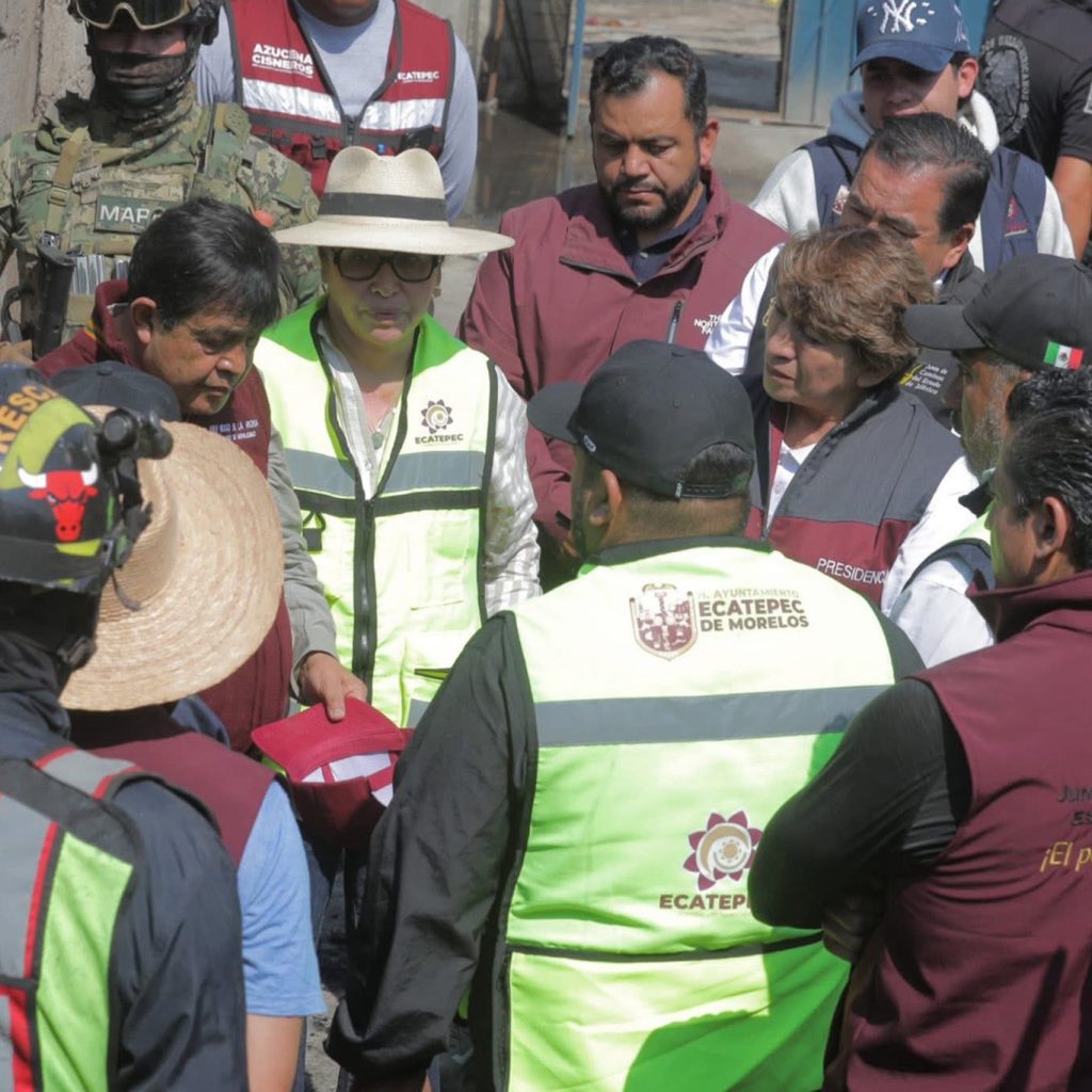La presidenta municipal, Azucena Cisneros Coss, y la gobernadora del Estado de México, Delfina Gómez Álvarez, realizaron un recorrido en la zona de El Salado, Xalostoc, para evaluar los daños ocasionados por el incendio.