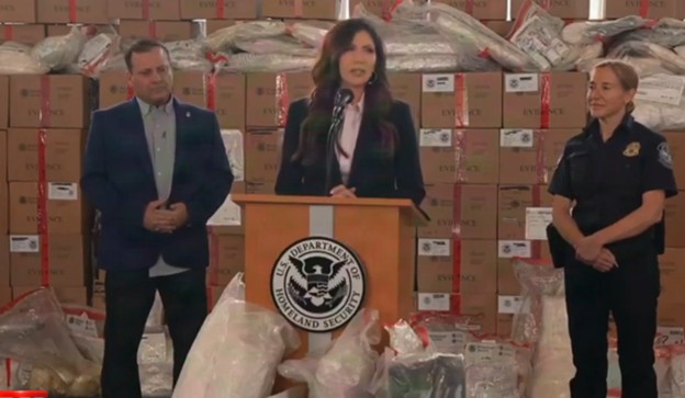 La Secretaria del Departamento de Seguridad de Estados Unidos, kiristy Noem, anunció la incautación de miles de dosis letales de fentanilo que habrían cobrado la vida de 10 millones de estadounidenses si se hubiera permitido su entrada al país.