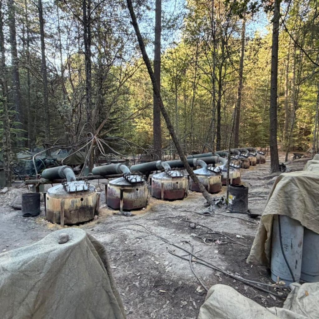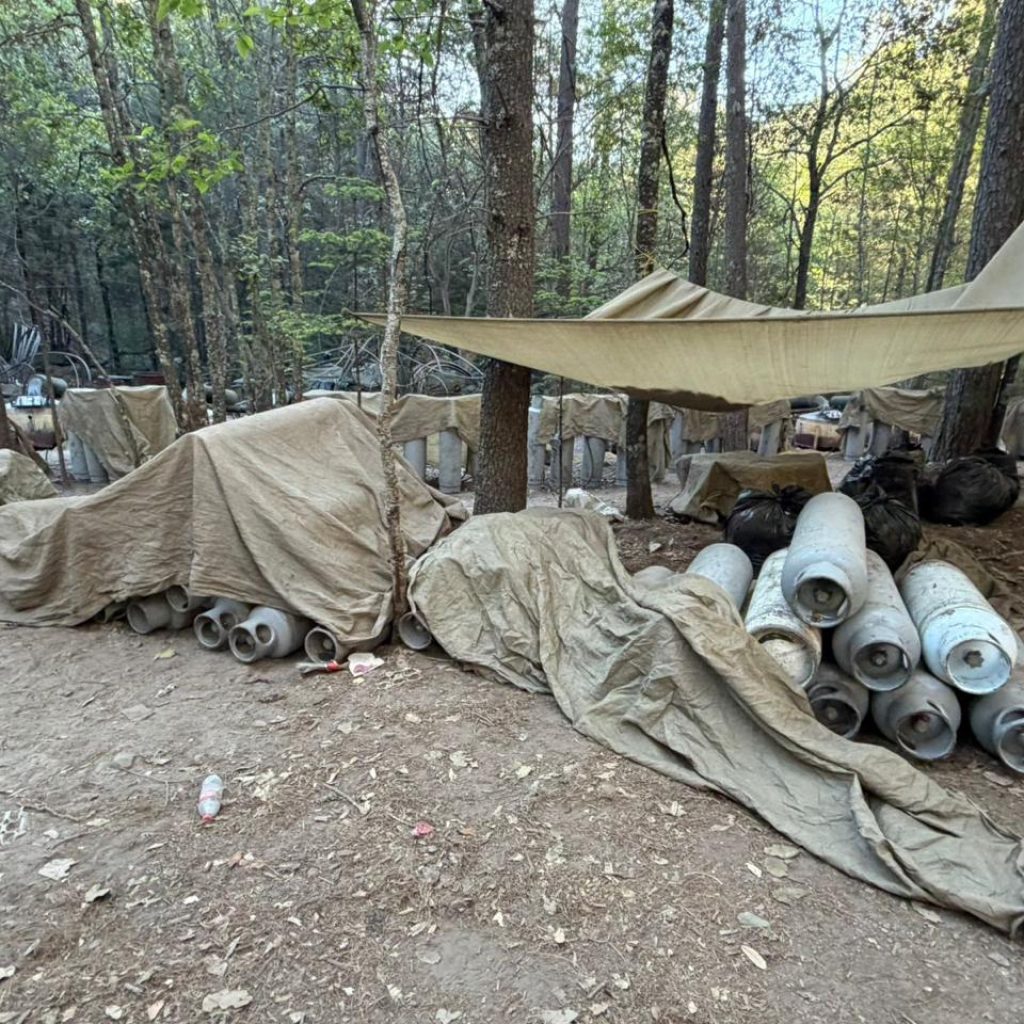 - Laboratorio Principal (850 m²): Un espacio dividido en cinco secciones donde se encontraron 61 cilindros de gas conectados, 15 hornos industriales, calderas, y más de 30 contenedores de mil litros de capacidad. También se aseguraron depósitos con acetona y diversos precursores químicos.
