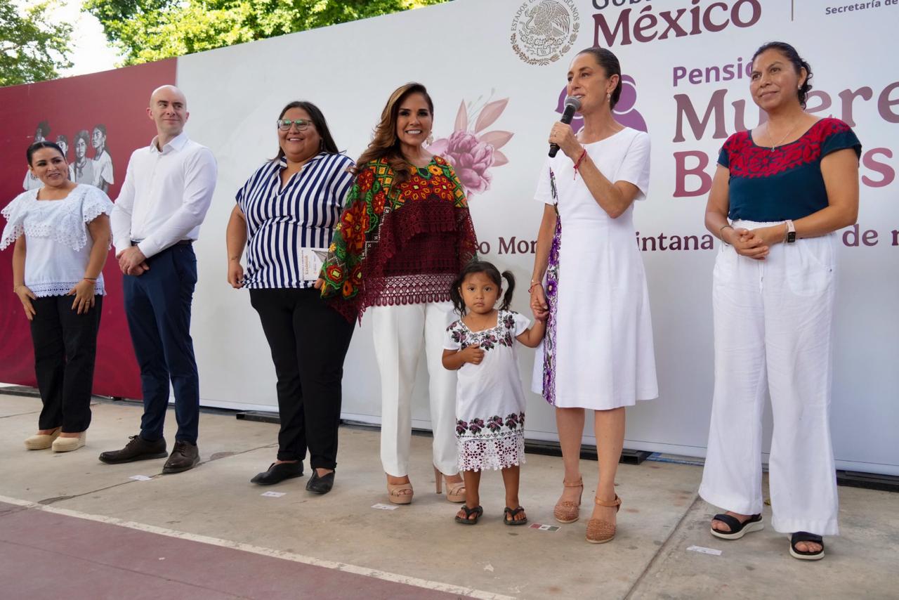 En su visita a Puerto Morelos, la presidenta de México, Claudia Sheinbaum, encabezó una asamblea en la que celebró como un logro nacional el hecho de que más de 3 millones de mujeres de entre 60 y 64 años ya reciben la Pensión Mujeres Bienestar, que otorga un apoyo de 3 mil pesos cada dos meses.