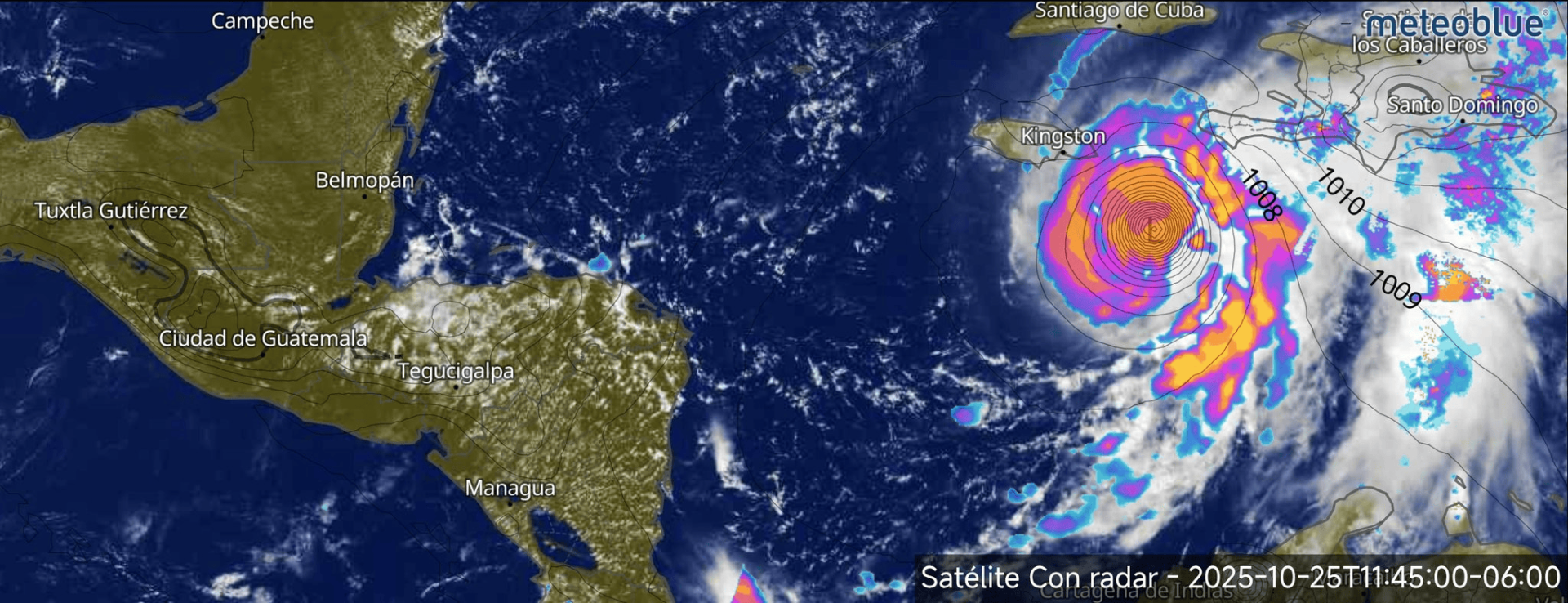 El huracán “Melissa”, de categoría 4, registra vientos de hasta 75 km/h, con desplazamiento hacia el nor-noroeste.