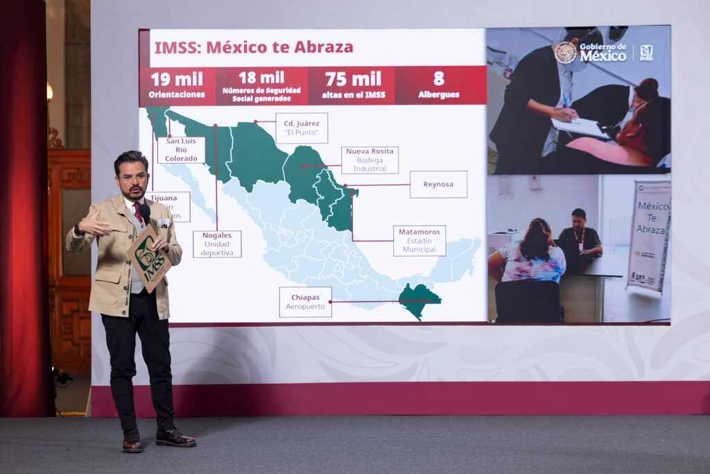 Dentro del programa “México te Abraza”, el IMSS también informó la atención médica a más de 13 mil connacionales en distintos puntos fronterizos del país, con diagnósticos frecuentes de infecciones respiratorias, hipertensión, diabetes y problemas de salud mental. Asimismo, se han instalado ocho albergues y se brindaron más de 19 mil orientaciones médicas.