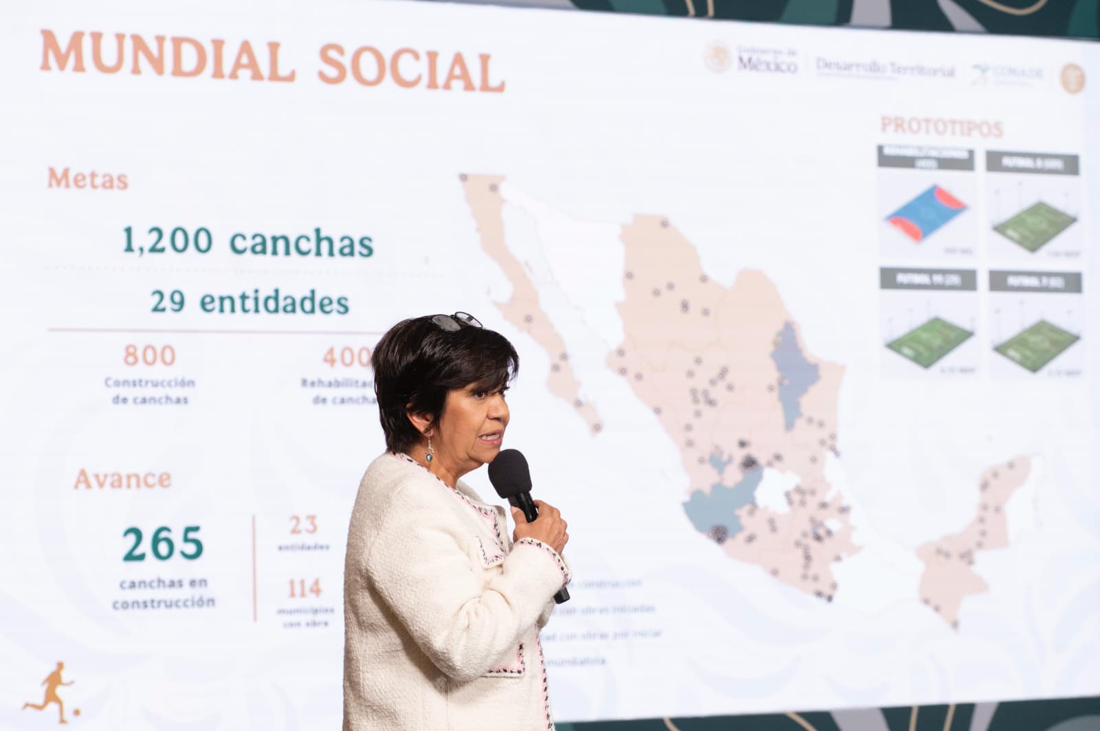 En total se rehabilitarán 400 canchas que ya existen y se construirán otras 800 en 29 entidades del país, además de los trabajos en las tres sedes mundialistas (CDMX, Jalisco y Nuevo León).