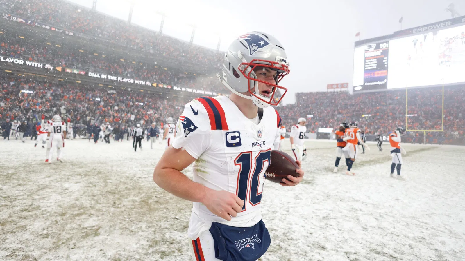 Aunque como home team podían haber elegido un uniforme de color tradicional, los Pats han decidido ir con este look “all-white”, que no solo fue el que utilizaron en su victoria 10-7 ante los Broncos en la Final de la AFC, sino que han lucido sin derrota en esa combinación en la temporada y playoffs de 2025.