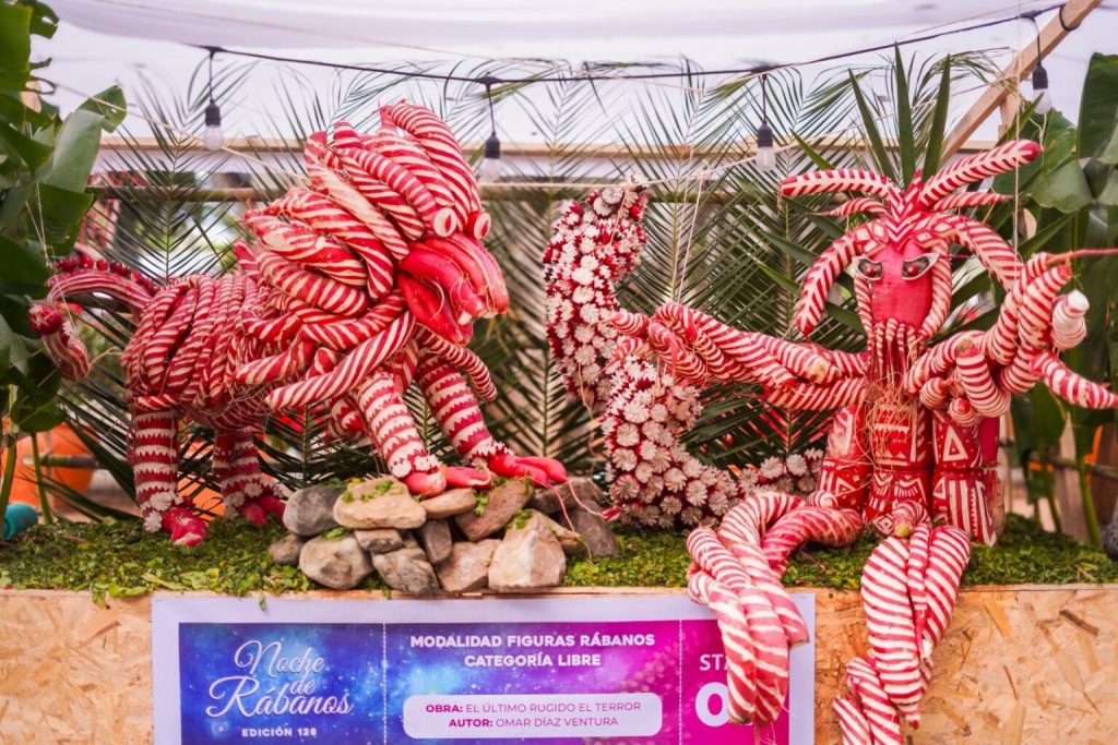 “Nos da mucho gusto que las y los oaxaqueños, así como turistas, nacionales y extranjeros viven la edición 128 de esta noche de rábanos, una majestuosa esa tradición que celebramos cada año” expresó.