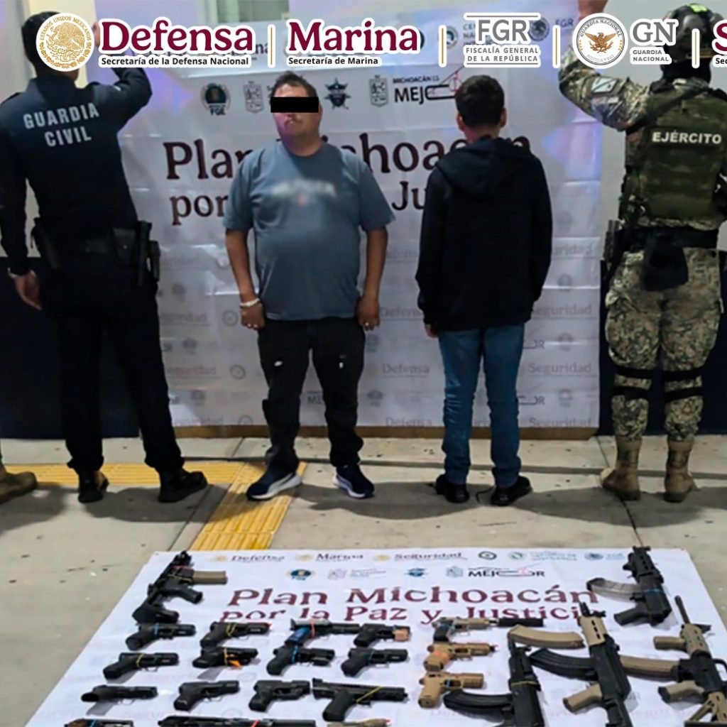 Como parte de las acciones del Plan Michoacán por la Paz y la Justicia, autoridades federales y locales detuvieron a tres personas, aseguraron 36 armas de fuego, mil 86 cartuchos, 61 cargadores, un artefacto explosivo improvisado, nueve vehículos y equipo táctico.