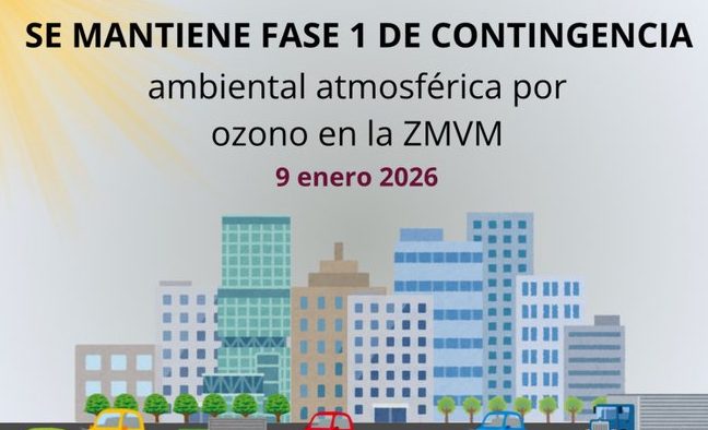 La Comisión Ambiental de la Megalópolis, informó que se mantiene la fase uno de contingencia ambiental atmosférica en la zona metropolitana del Valle de México, debido a que continúa la afluencia del sistema de alta presión que provoca estabilidad atmosférica de moderada a fuerte y viento débil.