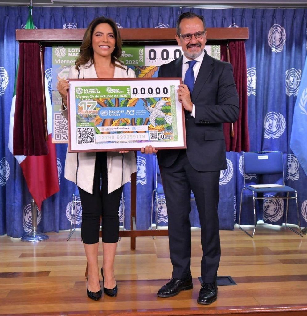 Bajo el lema “Construyendo nuestro futuro en conjunto: 80 años de México en la ONU y de la ONU en México”, el billete de lotería celebra ocho décadas de trabajo multilateral en favor de la paz, los derechos humanos y el desarrollo sostenible.