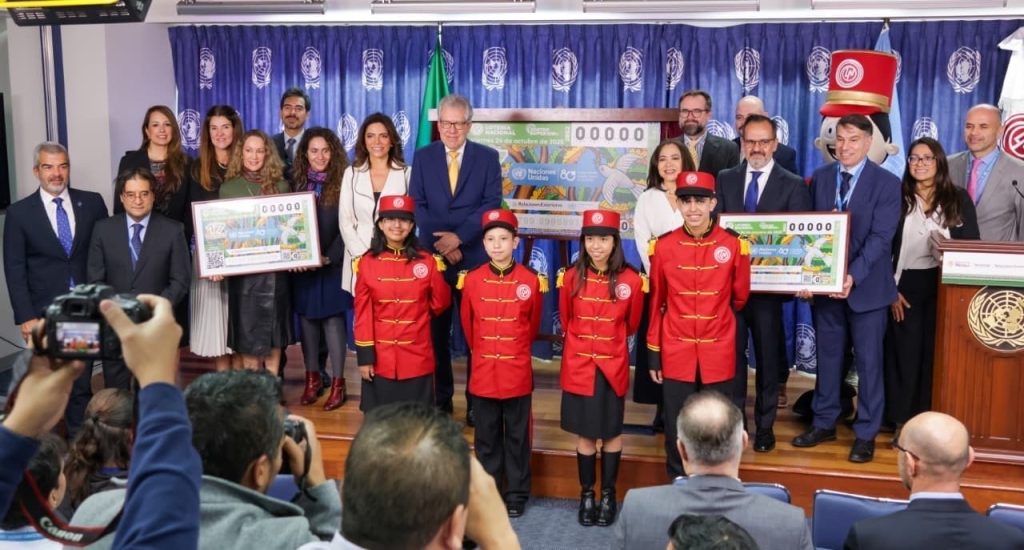 La directora Olivia Salomón mencionó que, para acompañar el 80 aniversario de una de las instituciones más trascendentes de la historia contemporánea, la Lotería Nacional emite un billete que representa una causa común para encontrar soluciones conjuntas a los grandes desafíos globales.
