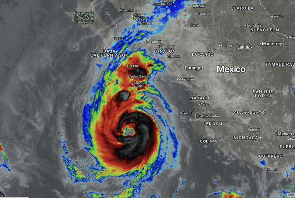 Por ello, las autoridades mantienen activa la zona de vigilancia por efectos de tormenta tropical, desde Cabo San Lucas hasta Cabo San Lázaro, en Baja California Sur.