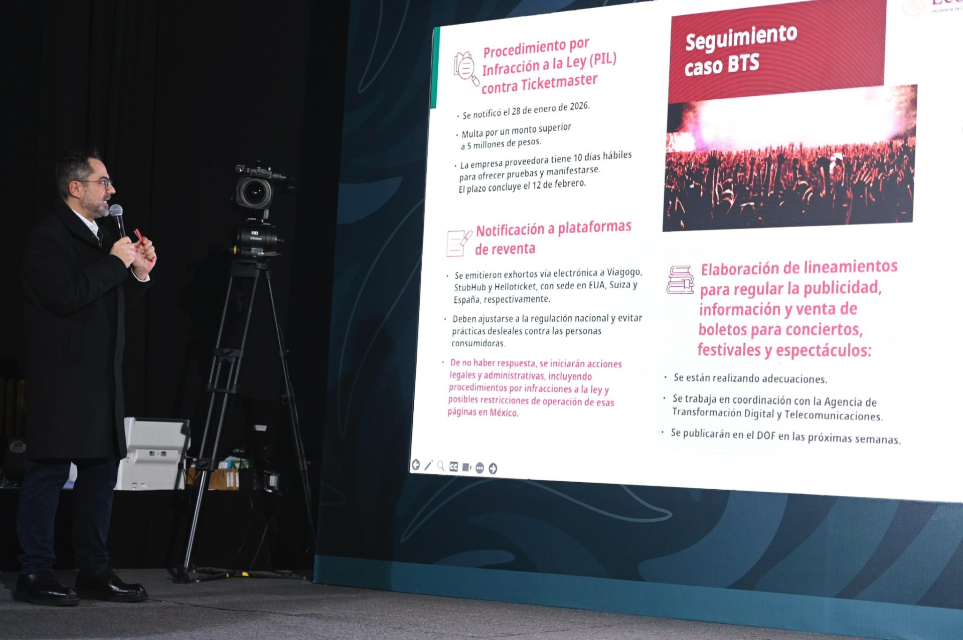 México. — La Procuraduría Federal del Consumidor (Profeco) inició un procedimiento por infracción a la ley contra Ticketmaster por irregularidades en la venta de boletos para los conciertos de BTS en Ciudad de México, programados para mayo de 2026. De resultar procedente, la empresa podría enfrentar una multa superior a los 5 millones de pesos.
