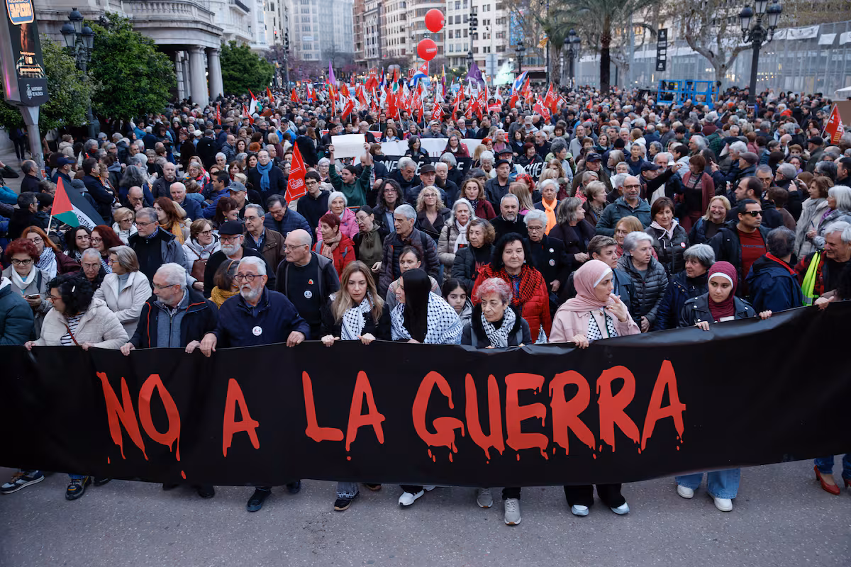 Cerca de 10,000 personas recorrieron el centro de la ciudad para condenar la escalada bélica y el gasto militar; la protesta en Valencia advierte sobre el impacto económico directo que el conflicto tendrá en la cesta de la compra.