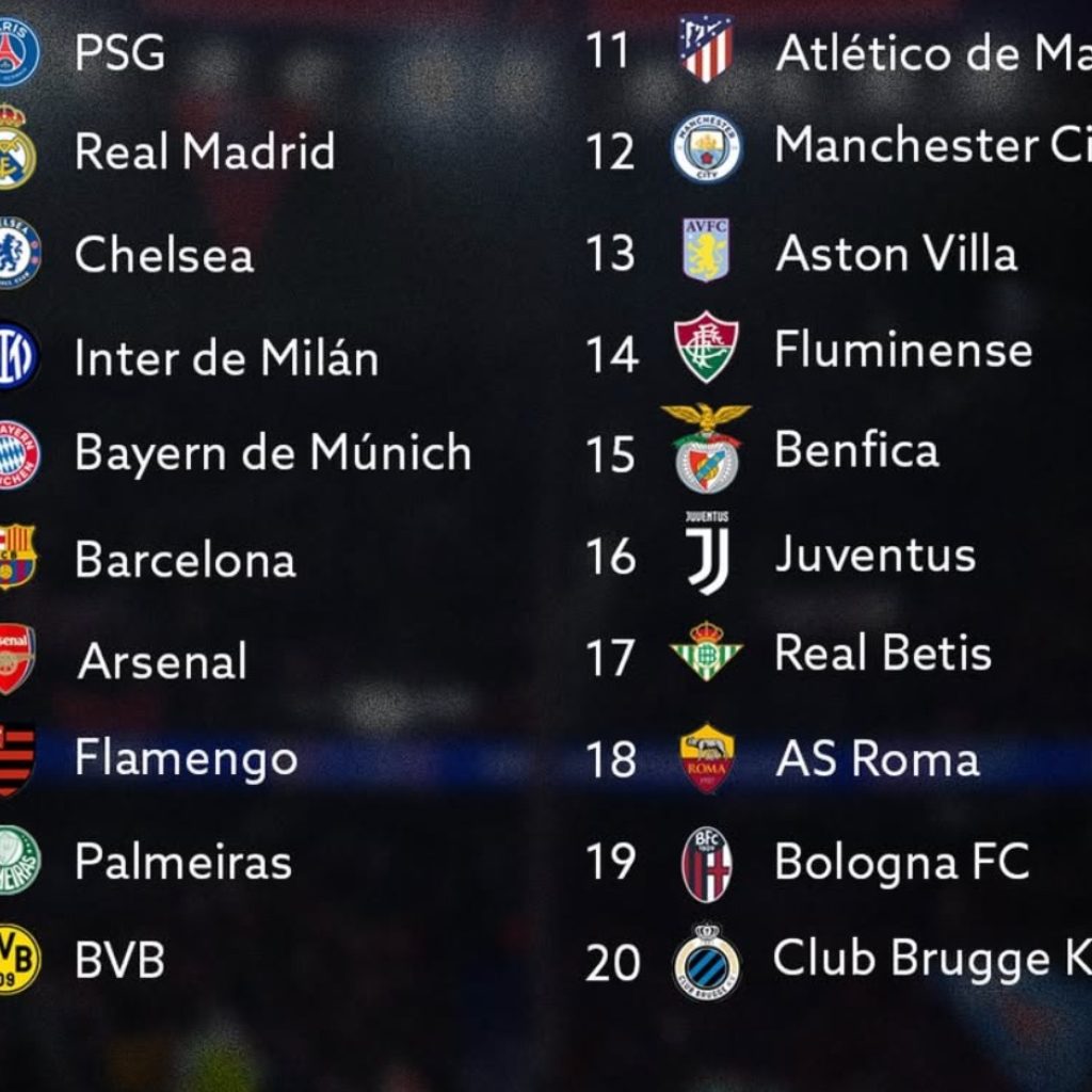 El Top 5 del ranking está dominado por gigantes de la UEFA. El Real Madrid CF de España se posicionó en el segundo lugar, seguido por el Chelsea FC de Inglaterra en el tercer puesto. El FC Internazionale de Milán (4°) y el FC Bayern Múnich (5°) completan los primeros cinco lugares.