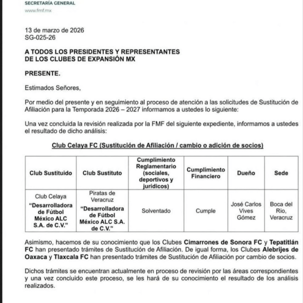 La Federación Mexicana de Fútbol validó el expediente presentado por el empresario José Carlos Vives Gómez, quien se convierte en el propietario y rostro principal de los Piratas. La operación incluyó la revisión minuciosa de la procedencia de los recursos y el plan de negocios a cinco años, garantizando que Veracruz no vuelva a sufrir las inestabilidades del pasado. Con este aval, la identidad de los «Toros» de Celaya desaparece de los registros oficiales para dar paso a la nueva marca «Piratas», diseñada para evitar conflictos legales con nombres anteriores.